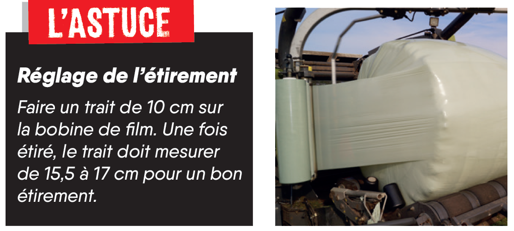 LES FILMS Tout film d’enrubannage doit impérativement être utilisé avant la date limite d’utilisation mentionnée sur l’étiquette apposée sur la bobine et/ou sur l’unité de conditionnement. Il est conseillé d’utiliser le film d’enrubannage dans les 12 mois suivant sa date d’achat chez votre concessionnaire PROMODIS. Les principaux facteurs de dégradation du film sont la lumière et la température, mais aussi les agressions mécaniques. C’est pourquoi les bobines doivent être stockées debout dans un local ventilé. Pour avoir une bonne conservation, il est conseillé d’enrubanner maximum 2 heures après le pressage. Reconnaître un film d’enrubannage de qualité. Le nombre de couches Pour choisir votre film, bien vérifier le nombre de couches ou l’épaisseur de votre film. En général, le film se compose de 5 couches mais parfois moins. Un film de bonne qualité permettra de bien protéger vos balles des agressions extérieures. L’élasticité Le film doit pouvoir être étiré jusqu’à 70% avant l’enrubannage. Ceux de moindre qualité sont souvent pré-étirés de 50 à 55%. Vous pouvez ainsi économiser de la longueur et filmer plus de balles.